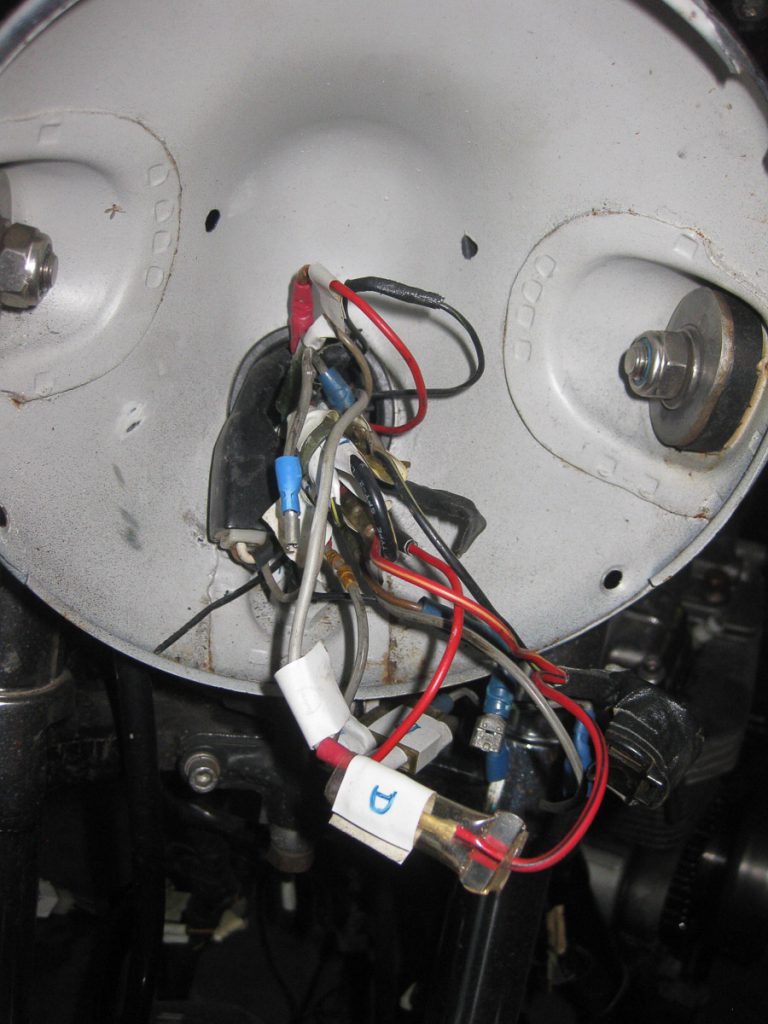 Wer immer sich ausgedacht hat, 5 Ampere fürs Fahrlicht von hinten nach vorn, dann wieder nach hinten, durch einen Vorwiderstand nach vorn rechts, von da nach vorn links und dann endlich zur Lampe zu leiten, sollte doch lieber was anderes machen als Motorradelektrik.