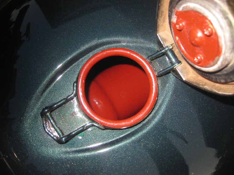 Na gut, ein halber Liter wird wohl dann fehlen, mal nachsehen ... tja, und damit hatte ich nicht gerechnet: 14 Liter waren verdunstet, der Tank meiner Z750 Twin war leer und gleichmäßig innen rostig . Die wechselnden Temperaturen und die hohe Luftfeuchtigkeit im Frühjahr hatten ganze Arbeit geleistet.
