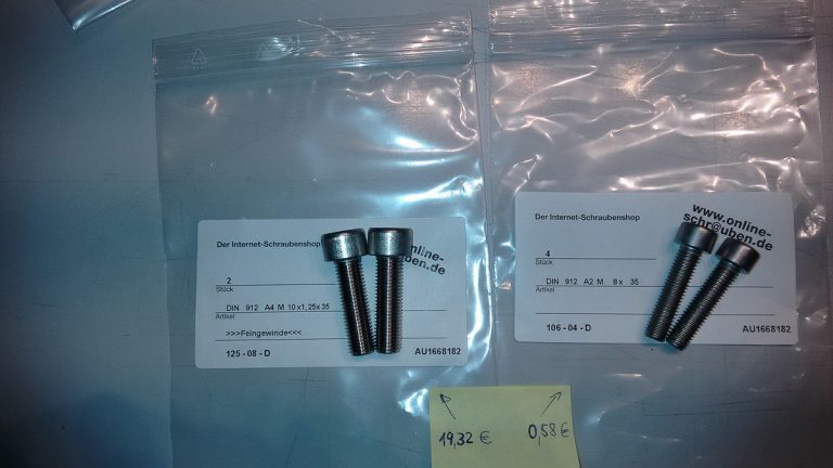 Apropos "Apothekenpreise": Die bestellten Edelstahlschrauben sind gekommen. Sehr praktisch, bei www.online-schrauben.de
