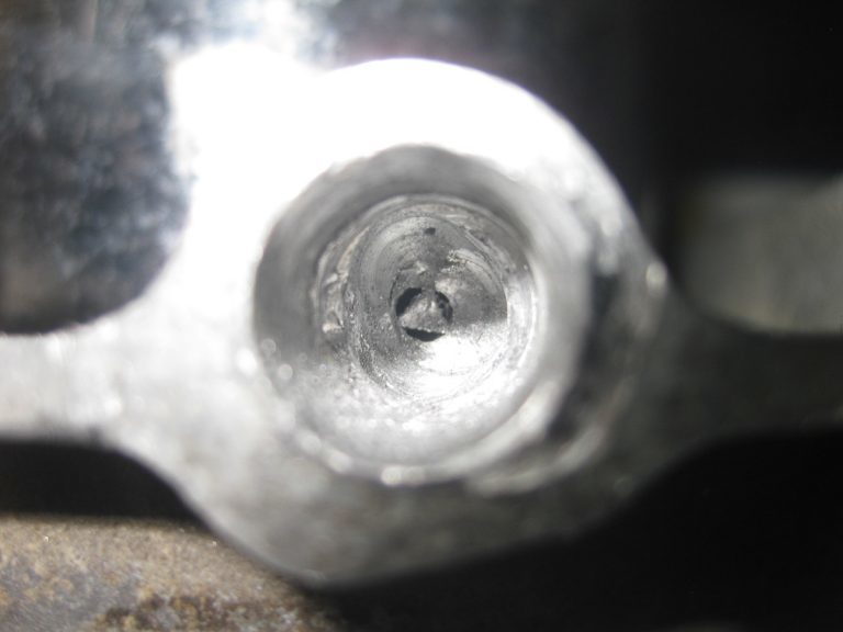 Nun sollte es ja endlich mal ordentlich gemacht werden. Die Schraube saß nicht in einem Sackloch, sondern